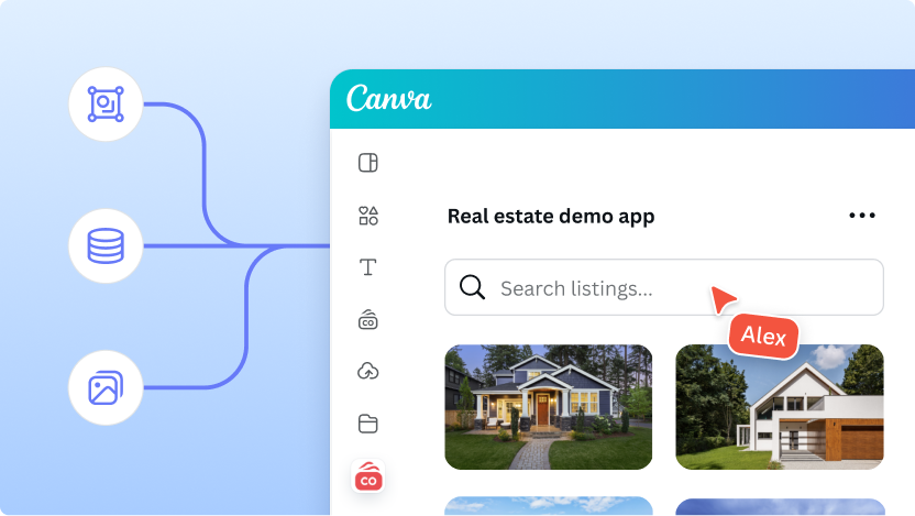 Build apps that work inside Canva with the Canva Apps SDK. They bring your data, content, or workflows directly into the Canva editor. Or, build apps that integrate Canva into your own tools or platforms with the Canva Connect APIs. Send finished Canva designs into your existing systems, power data-driven templates, automate repetitive design tasks, or synchronize content between Canva and your internal tools. If your system exposes an API or manages structured content, it can usually be connected to Canva.