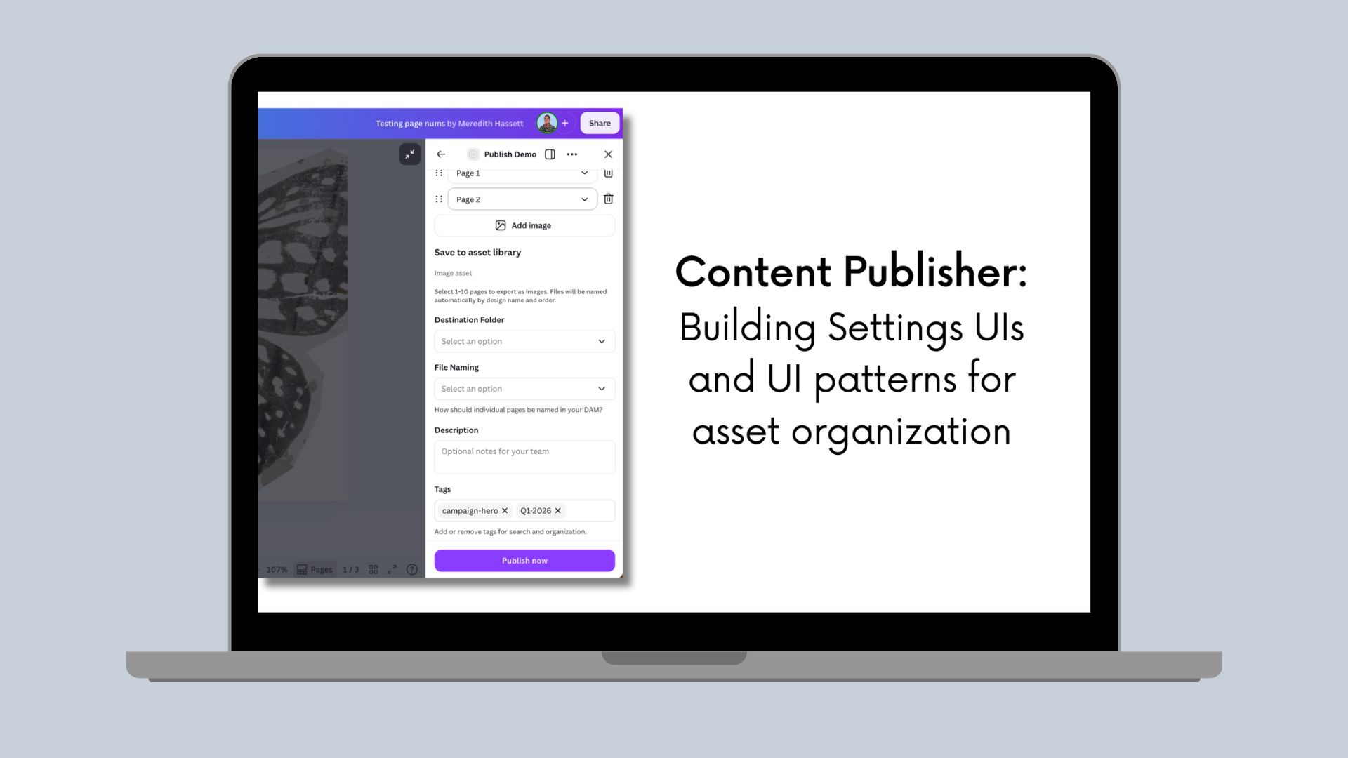 This post covers how to build Settings UIs that collect asset metadata from users and serialize it into publishRef, along with advanced patterns for searchable navigation, tag structure suggestions, and context-aware defaults.