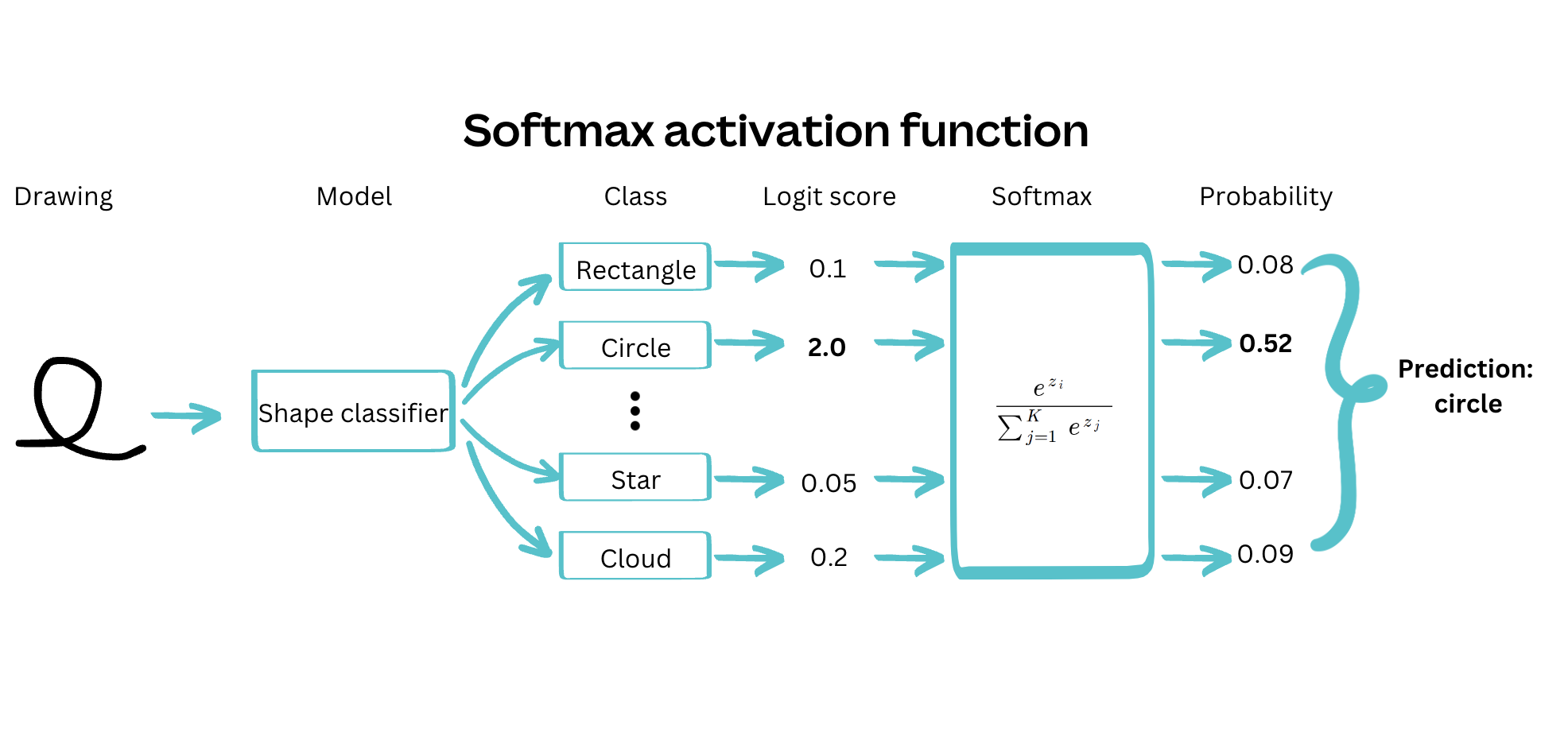 Given that only one shape could be correct at a time, a softmax activation function, combined with a cross-entropy(opens in a new tab or window) loss, was the obvious choice. We could reject the prediction if the confidence associated with the highest-probability class was below a given threshold. However, we found that this approach led to models with high confidence, even when wrong. Therefore, we opted instead to train the model as a multi-class multi-label classifier, using sigmoid activation functions on each output class, and rejecting the prediction if no classes were above a given threshold.