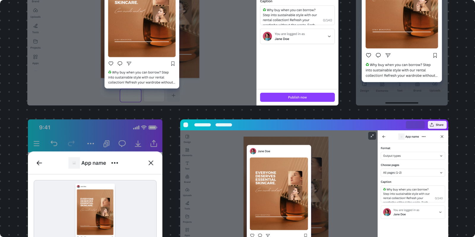 - Built for scale: Integrate across Canva surfaces. Whether users access Canva from desktop, mobile, or future surfaces, your app will have a seamless user experience.